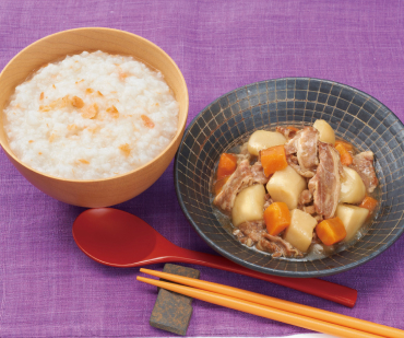 - 米(国産)、鶏卵、鶏肉、にんじん、還元水あめ、しょうゆ、チキンエキスパウダー、ポークエキス、かつお節エキス、オニオンエキス、酵母エキスパウダー、食塩/増粘剤(加工でん粉)、酸味料、調味料(アミノ酸等)、(一部に卵・乳成分・小麦・大豆・鶏肉・豚肉を含む)