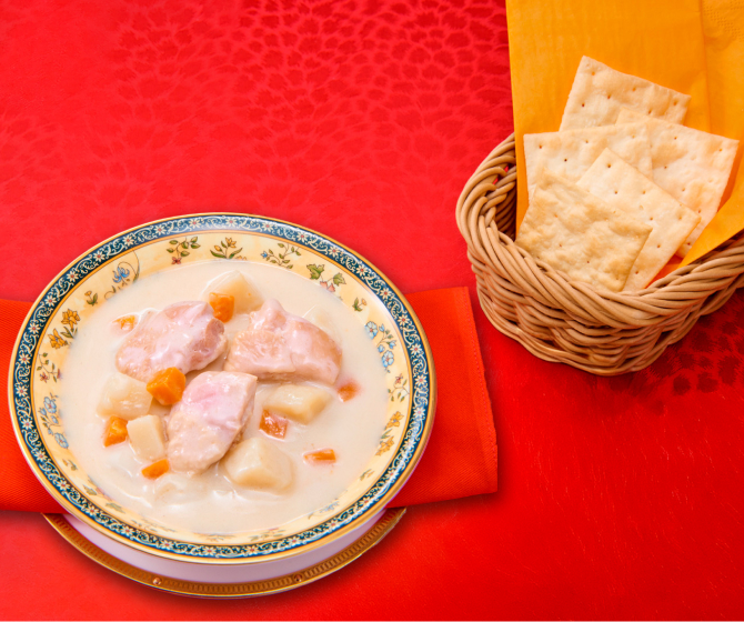 - 野菜(じゃがいも、にんじん)、鶏肉(タイ)、牛乳、乳等を主要原料とする食品(植物油脂、クリーム、脱脂粉乳)、植物油脂、小麦粉、チキンエキス、オニオンエキス、乳たん白加工品、チキンエキスパウダー、食塩、卵黄油、酵母エキスパウダー、砂糖、オニオンパウダー、ガーリックパウダー、香辛料/ソルビトール、増粘剤(加工でん粉、キサンタンガム)、調味料(アミノ酸等)、(一部に卵・乳成分・小麦・大豆・鶏肉を含む)