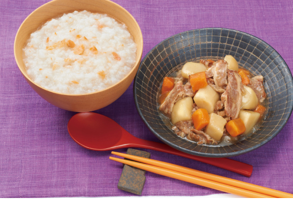- 野菜(じゃがいも(国産)、にんじん)、牛肉、しょうゆ、米発酵調味料、砂糖、ポーク・チキンエキス、オニオンエキス、かつお節エキス、酵母エキスパウダー/増粘剤(加工でん粉)、ソルビトール、調味料(アミノ酸等)、(一部に小麦・牛肉・大豆・鶏肉・豚肉を含む)