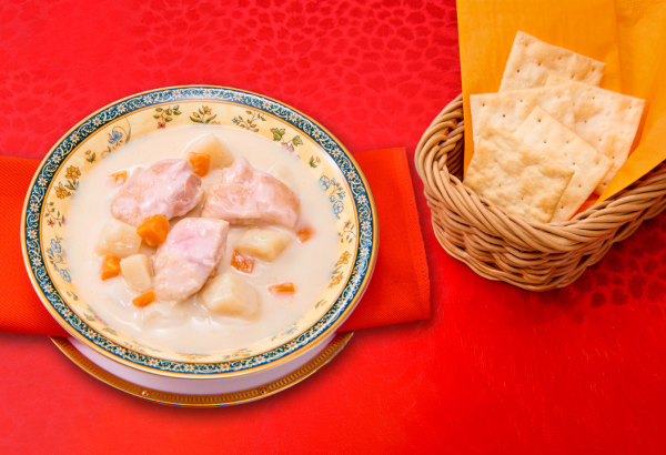 - 野菜(じゃがいも、にんじん)、鶏肉(タイ)、牛乳、乳等を主要原料とする食品(植物油脂、クリーム、脱脂粉乳)、植物油脂、小麦粉、チキンエキス、オニオンエキス、乳たん白加工品、チキンエキスパウダー、食塩、卵黄油、酵母エキスパウダー、砂糖、オニオンパウダー、ガーリックパウダー、香辛料/ソルビトール、増粘剤(加工でん粉、キサンタンガム)、調味料(アミノ酸等)、(一部に卵・乳成分・小麦・大豆・鶏肉を含む)