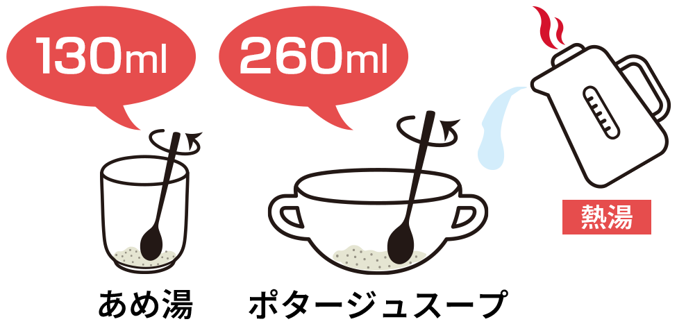 ●お好みにより熱湯・お湯・水の量を加減してください。