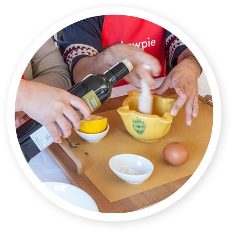 卵黄とオリーブオイルをゆっくり混ぜ合わせながら、少しずつ乳化していく様子を見て、マヨネーズの奥深さと手づくりの温もりを感じました。