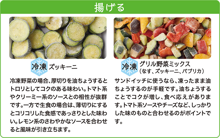 冷凍ズッキーニや冷凍グリル野菜ミックスをサンドイッチに使うなら、凍ったまま油ちょうするのが