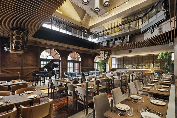 「BLUE NOTE PLACE」は、食と音楽を融合させたダイニングとして恵比寿ガーデンプレイスに2022年にオープン。吹き抜け2階建て180席の広く優雅な空間では、ランチ、カフェ、ディナー、バーとさまざまな食のシーンを提供してくれる。自社農園で育てる多彩な旬の野菜が一年を通してメニューで提供されディナータイムには食事とともに、音楽のライブ演奏やDJが楽しめる。