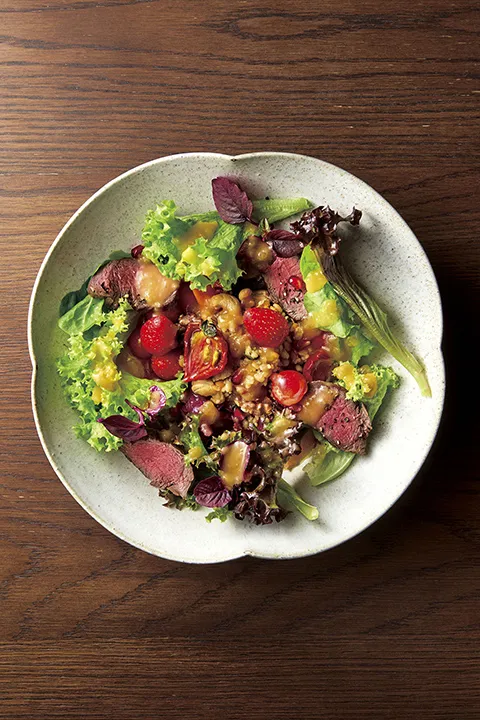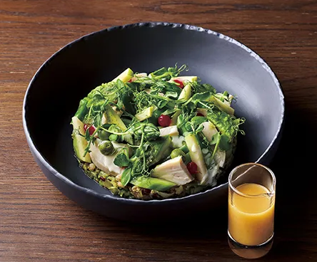 さて、この新しい食スタイルを、日本の外食店はどのように取り入れるべきでしょうか?ただ単に「野菜+フルーツ+たんぱく質+トッピング」を組み合わせただけでは、従来のボリュームたっぷりの副菜サラダとの違いを打ち出すのは難しいでしょう。そこで、シェフのこだわりを活かし、明確なテーマを持たせたパワーサラダを店のスペシャリテとして位置づけるのはどうでしょうか。そのテーマによって“主食感覚”というコンセプトをお客様に明確に伝え、これまでにない魅力的な一皿に仕上げることができるはずです。