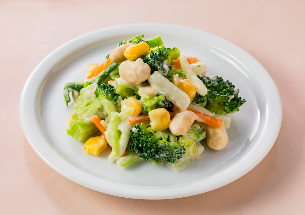 子どもも大人もマヨネーズで食べやすいためか、人気メニューの一つです。食物繊維はもちろん、カルシウムや鉄をサラダで摂ることができます。