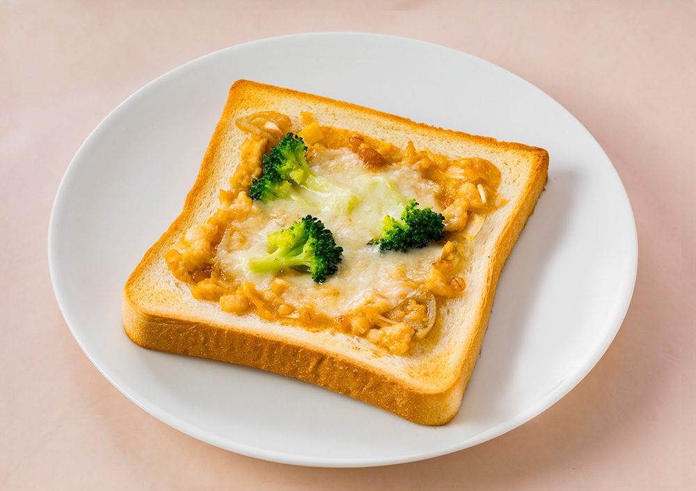 給食では衛生管理上 野菜やクリームチーズを加熱調理する必要がありますが、加熱するとクリームチーズが柔らかくなってしまうため、サンドしたパンから流れ出てしまう心配がありました。そこで、キユーピー エッグケアを使えばオーブンで焼いた時に固まると考えました。