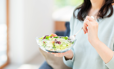 パンと一緒にサラダを食べる